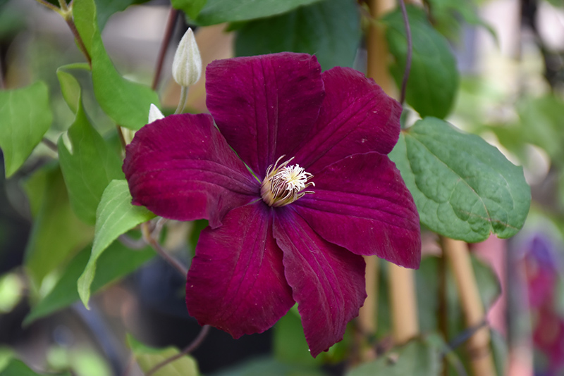 Rouge Cardinal Clematis makes a fine choice for the outdoor landscape, but it is also well-suited for use in outdoor pots and containers. Because of its spreading habit of growth, it is ideally suited for use as a 'spiller' in the 'spiller-thriller-filler' container combination; plant it near the edges where it can spill gracefully over the pot. It is even sizeable enough that it can be grown alone in a suitable container. Note that when grown in a container, it may not perform exactly as indicated on the tag - this is to be expected. Also note that when growing plants in outdoor containers and baskets, they may require more frequent waterings than they would in the yard or garden. Be aware that in our climate, most plants cannot be expected to survive the winter if left in containers outdoors, and this plant is no exception. Contact our experts for more information on how to protect it over the winter months.