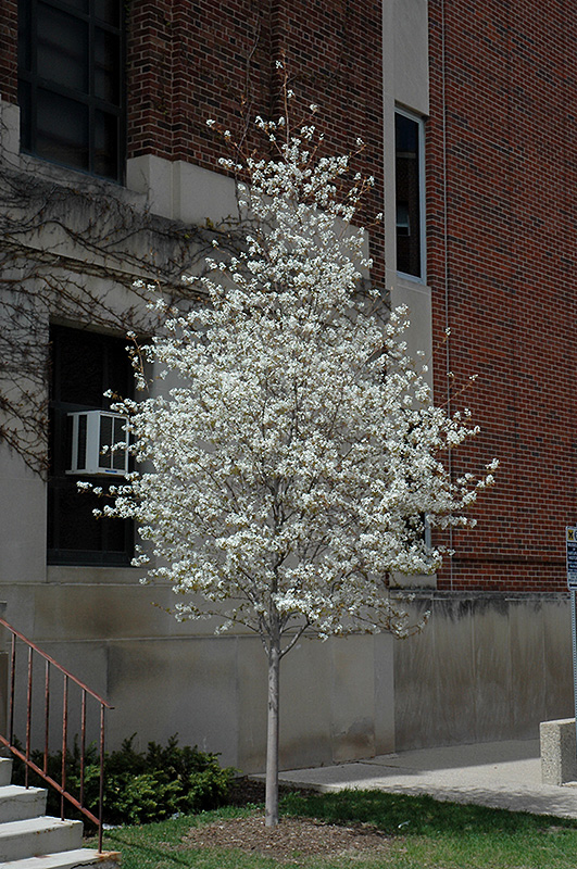 Spring Flurry® Serviceberry will grow to be about 28 feet tall at maturity, with a spread of 20 feet. It has a low canopy with a typical clearance of 4 feet from the ground, and is suitable for planting under power lines. It grows at a medium rate, and under ideal conditions can be expected to live for 40 years or more. While it is considered to be somewhat self-pollinating, it tends to set heavier quantities of fruit with a different variety of the same species growing nearby.