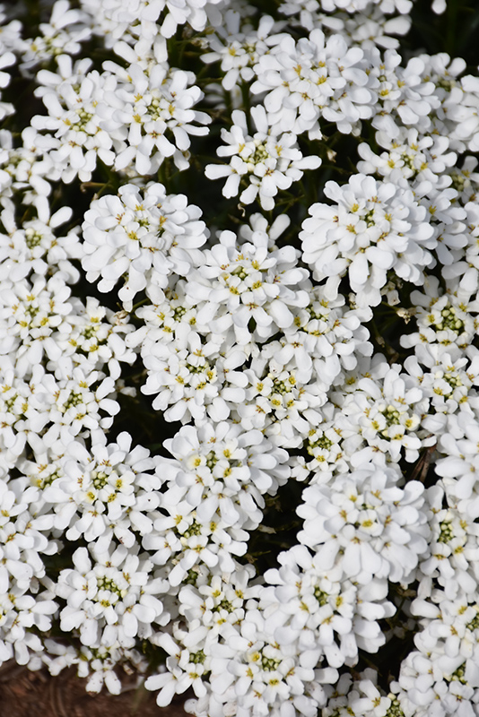 Snowsation Candytuft will grow to be about 10 inches tall at maturity, with a spread of 15 inches. When grown in masses or used as a bedding plant, individual plants should be spaced approximately 12 inches apart. Its foliage tends to remain low and dense right to the ground. It grows at a medium rate, and under ideal conditions can be expected to live for approximately 10 years. As an evegreen perennial, this plant will typically keep its form and foliage year-round.