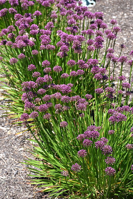 A compact ornamental onion producing a clump of grass-like narrow foliage; lavender-purple florets appear in globular clusters on stalks above the foliage in summer; mildly fragrant; impressive when massed in groupings; great as a long lasting cut flower